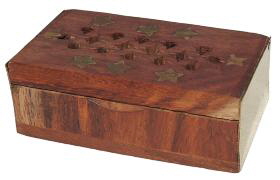 Duftstein Böxchen aus Holz mit Messing Sternchen. Höhe 2cm, Länge 6.5cm, Tiefe 3.7cm Fr. 5.-