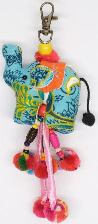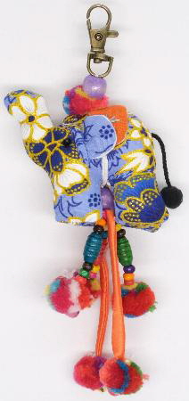 Elefanten Taschenanhänger aus Baumwolle mit Pompons. Masse Elefant: Länge ca. 8cm, Höhe ca. 7cm. Fr. 9.-