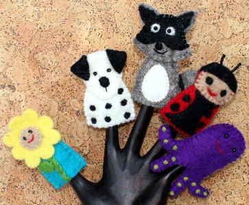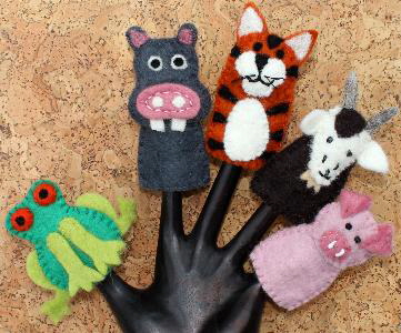 Fingerpuppen - Tiere aus Filz, Schurwolle, handgemacht in Nepal. Grösse der Fingerpuppen ca. 11cm. Preis pro Fingerpuppe Fr. 5.-