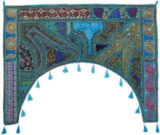 Indischer Türbehang (Toran) aus Gujarat, West-Indien UX-71 bis UX-89 “Patchwork-Style” mit Stickereien und diversen Verzierungen, aus Baumwolle, ca. 100cm breit und 75cm hoch. Fr. 49.- Die indische Patchworkkunst ist “inder” Vergrösserung optimal zu betrachten. Alle Torans sind Einzelstücke.