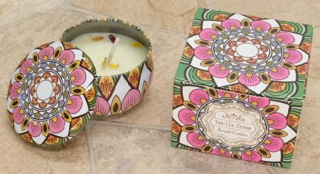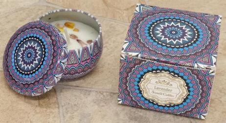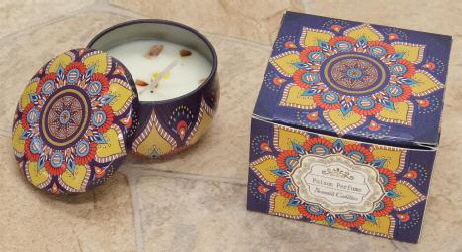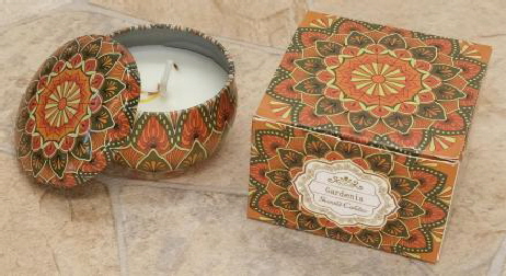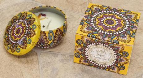 Duftkerzen “Oriental” Duftkerzen aus Sojawachs in acht verschiedenen Duftnoten. In hübscher Metalldose. Inhalt 50 Gramm, Brenndauer ca. 4 Stunden. Durchmesser Dösli 6cm, Höhe 3.7cm. Fr. 7.-